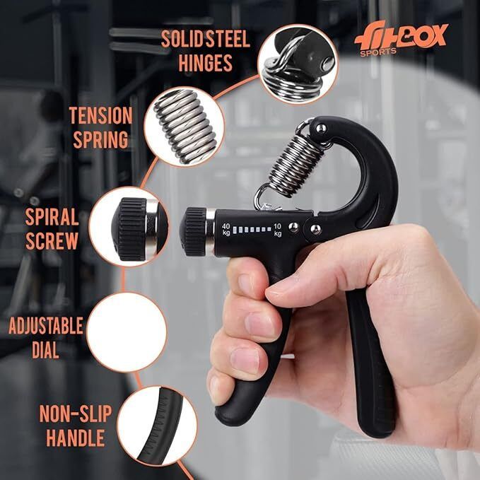 FitBox Sports Adjustable Hand Grip (5kg – 60kg) Strengthener With Counter for Men & Women for Gym Workout Hand Exercise Equipment to Use in Home for Forearm Exercise (Black)