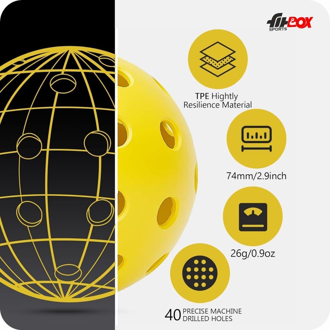 balls are one of the finest balls ever created for the sport of pickleball. Using only the best PE material and our advanced single piece design, this ball will withstand hours of the most aggressive play.Perfectly weighted and sized, these balls will certainly impress anyone on the court
