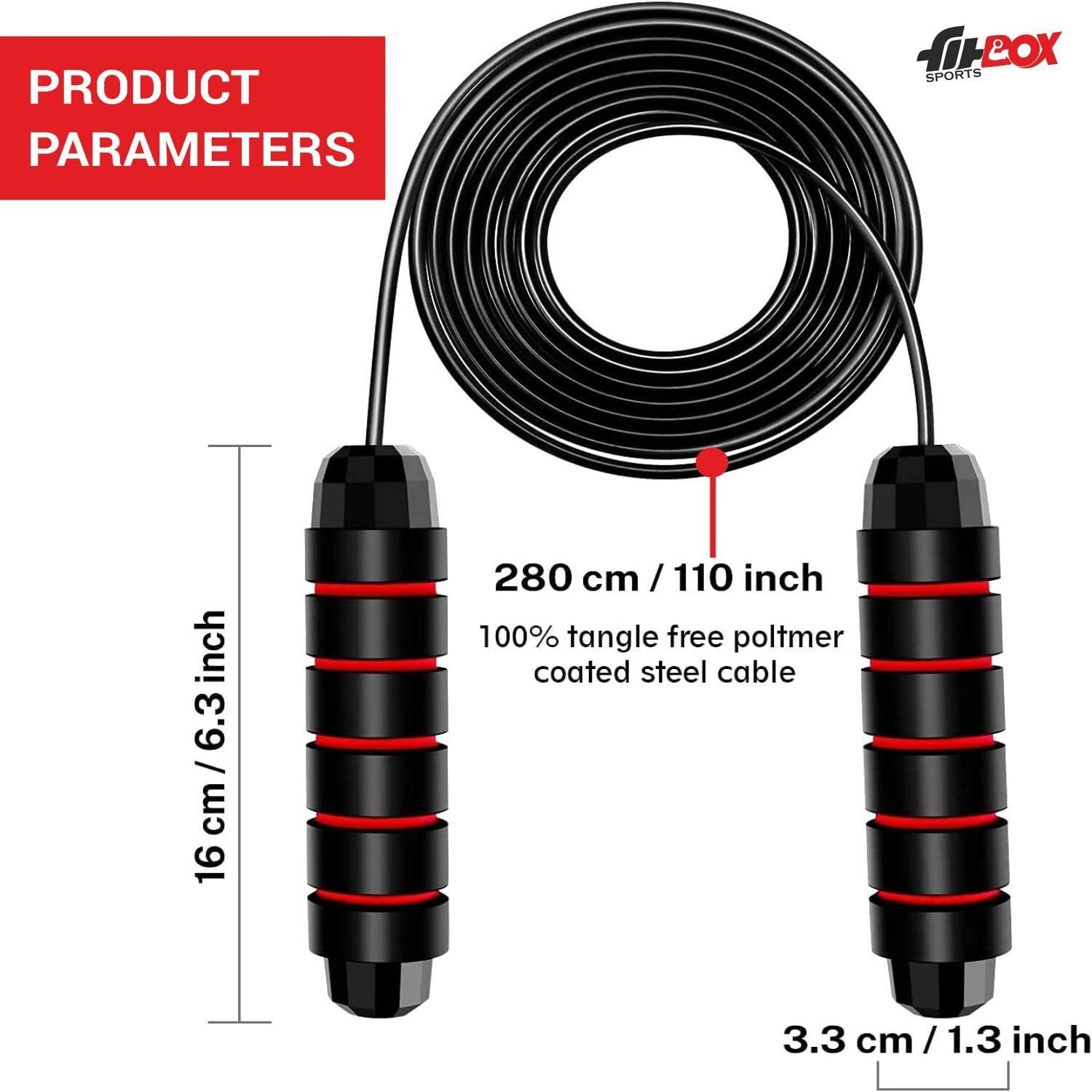 Skipping Rope Foam Padded With Coated Steel Rope, Jump Rope For Exercise Ball Bearing Skipping Rope (Black, Length: 280 cm)