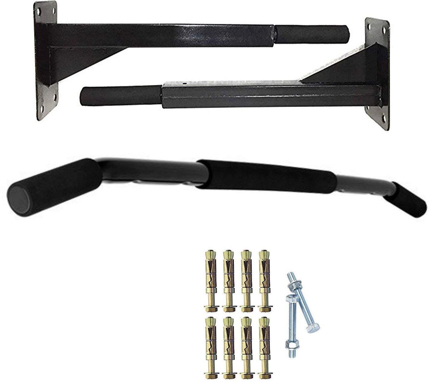 Wall Mounting Chin Up Bar, Pull Up Bar & Ab Straps Combo, 120 Kg Capacity, Multi-training Bar (Black)